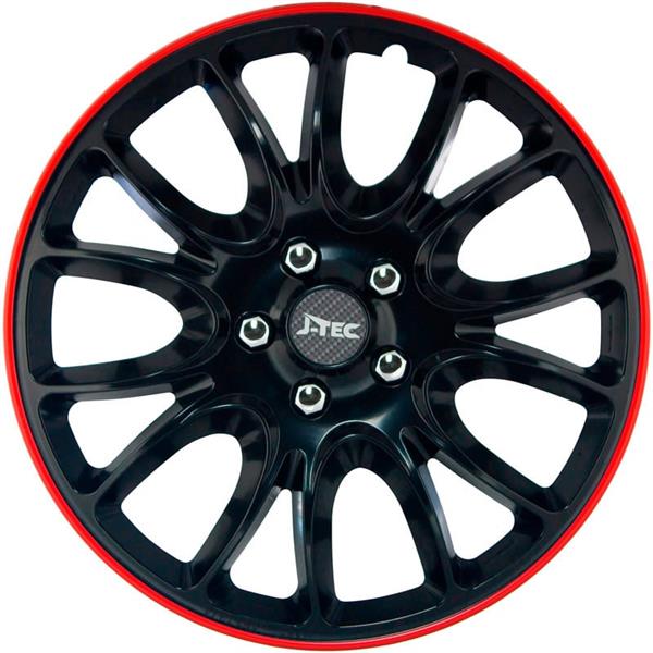 - 4-Delige J-Tec Wieldoppenset Hero GTR 15-inch zwart/rode rand