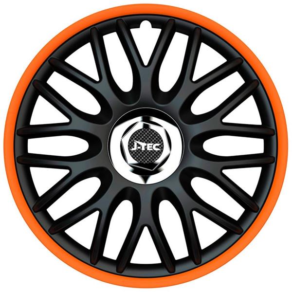 - 4-Delige J-Tec Wieldoppenset Orden R 14-inch zwart/oranje + chroom ring