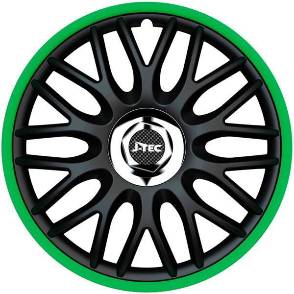 - 4-Delige J-Tec Wieldoppenset Orden R 15-inch zwart/groen + chroom ring