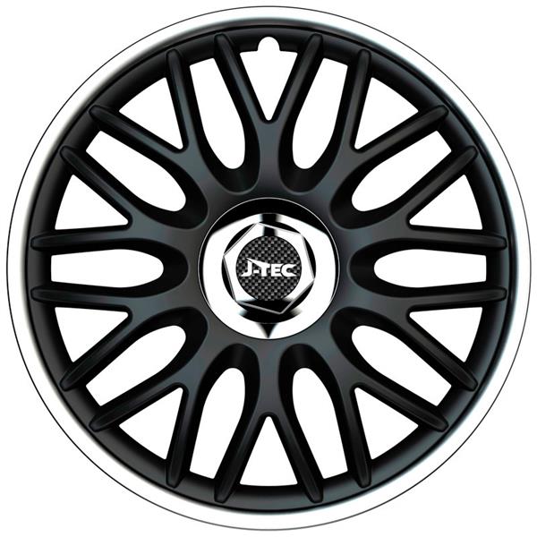 - 4-Delige J-Tec Wieldoppenset Orden R 15-inch zwart/zilver + chroom ring