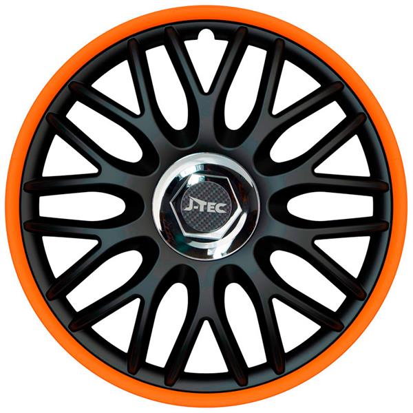 - 4-Delige J-Tec Wieldoppenset Orden R 16-inch zwart/oranje + chroom ring