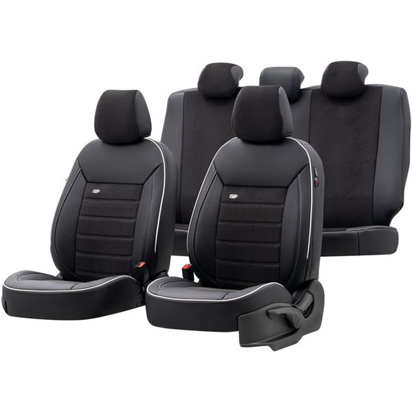 Universele Leder/Velours Stoelhoezenset 'Premium' Zwart + Witte rand - 11-delig - geschikt voor Side-Airbags
