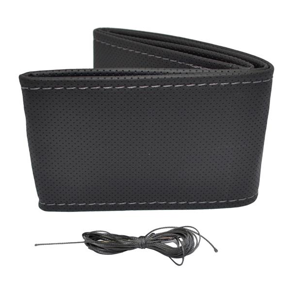 Universele stuurwielhoes Classic - Zwart geperforeerd PVC leder + Grijs stiksel (vetersluiting)