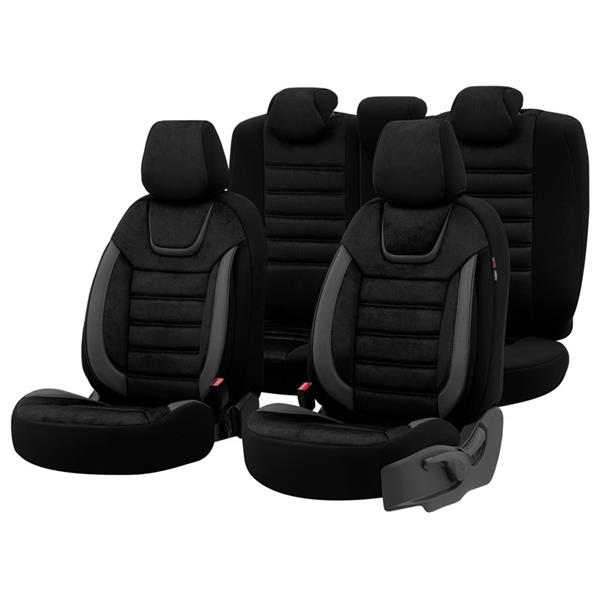 Universele Suede/Leder/Stoffen Stoelhoezenset 'Iconic' Zwart/Grijs - 11-delig - geschikt voor Side-Airbags